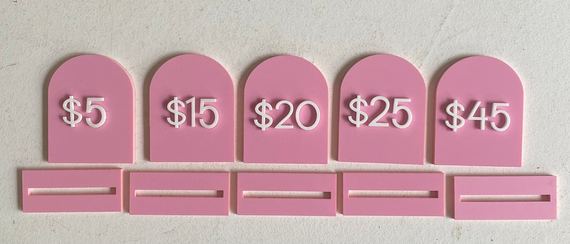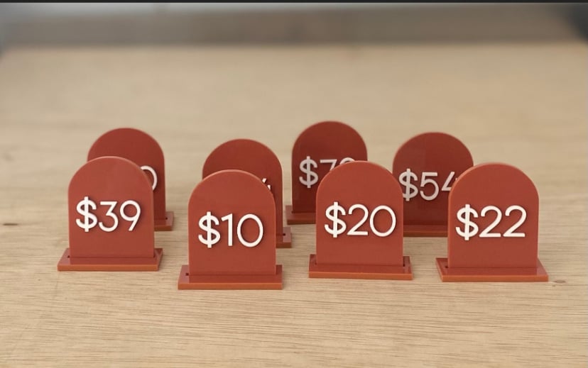 Add these acrylic arch price tags to your market display or store for a pop of colour!