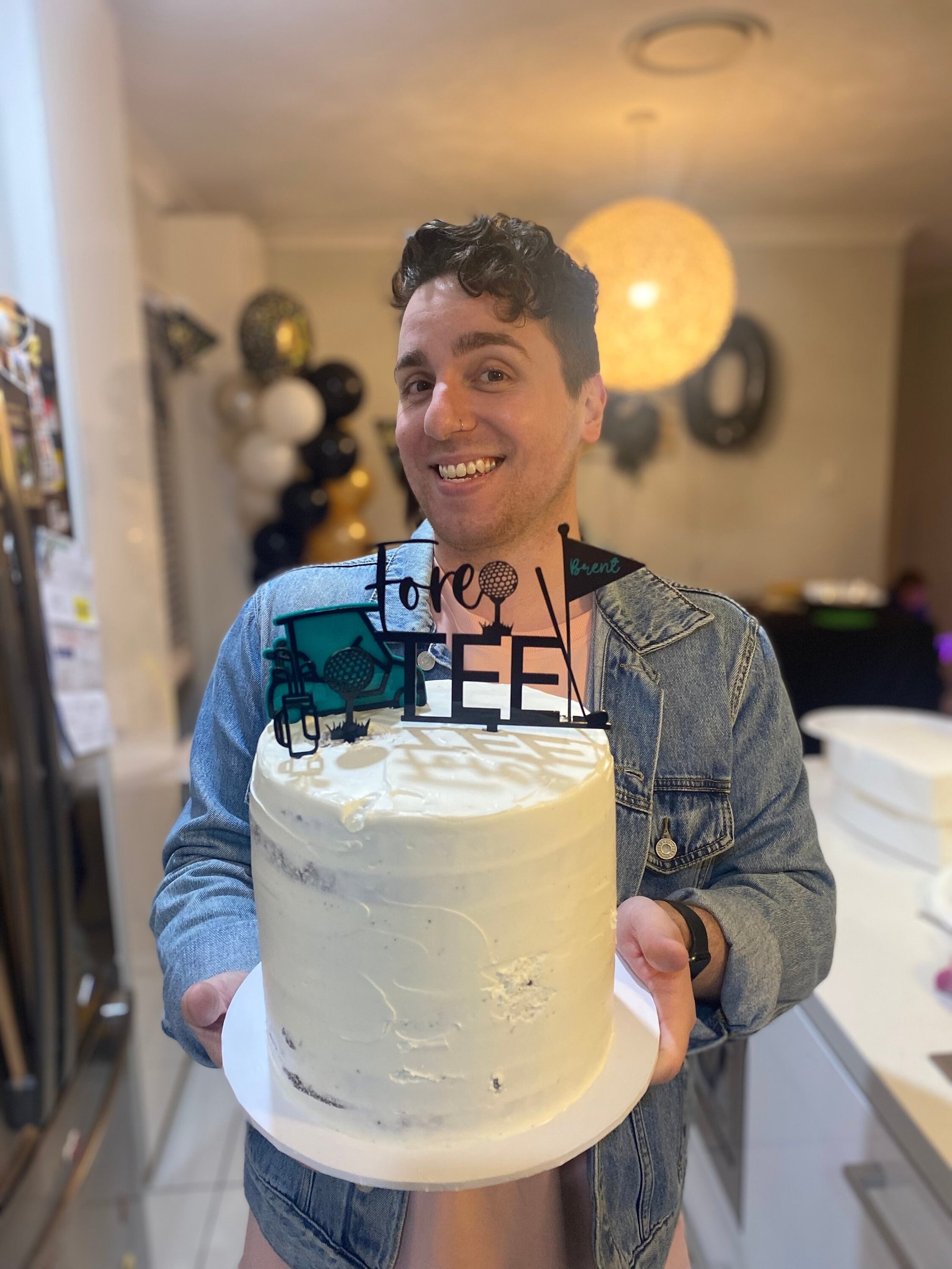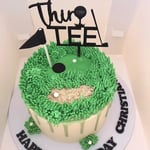 This golf cake topper kits comes complete with a large 13cm wide number and TEE topper a golf flag with name inserted and golf cart.