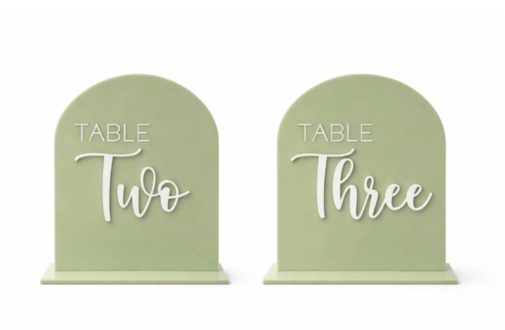 Featuring a soft arched design with layered lettering, these signs are perfect for weddings, parties, and special occasions.