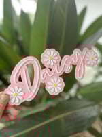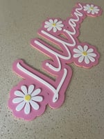 Add this cute double acrylic name with daisys to a child's room, nursery or could be hung on a cubby or mud kitchen with outdoor double sided tape.