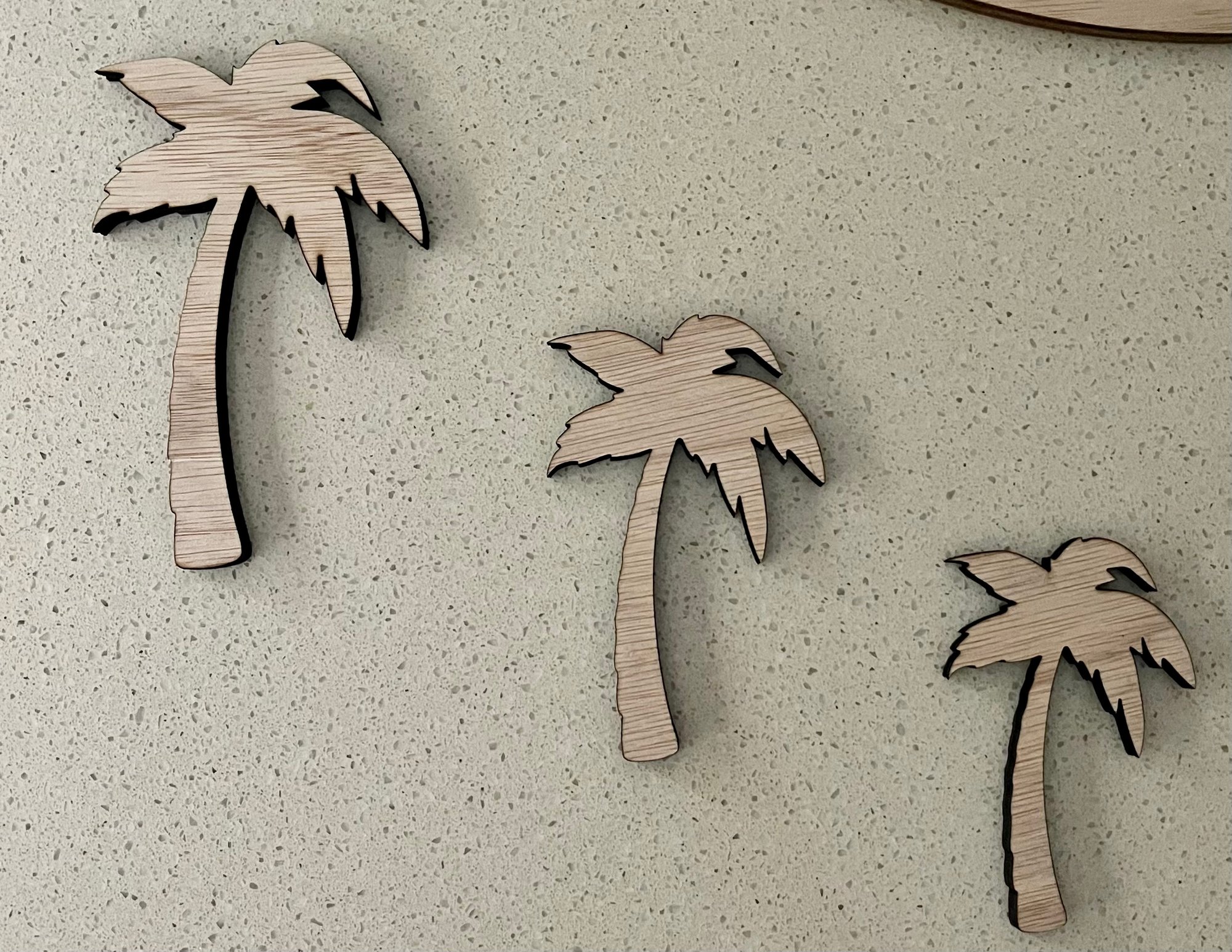 Bring a calm tropical vibe into your home with this beautiful palm tree wooden wall decor set. Designed with a minimalist style and natural wood finish, these palm silhouettes instantly add warmth and a relaxed beach house aesthetic to any space.