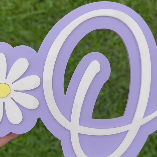 Add this cute double acrylic name with daisys and birthday number to a backdrop or wall for your next celebration.