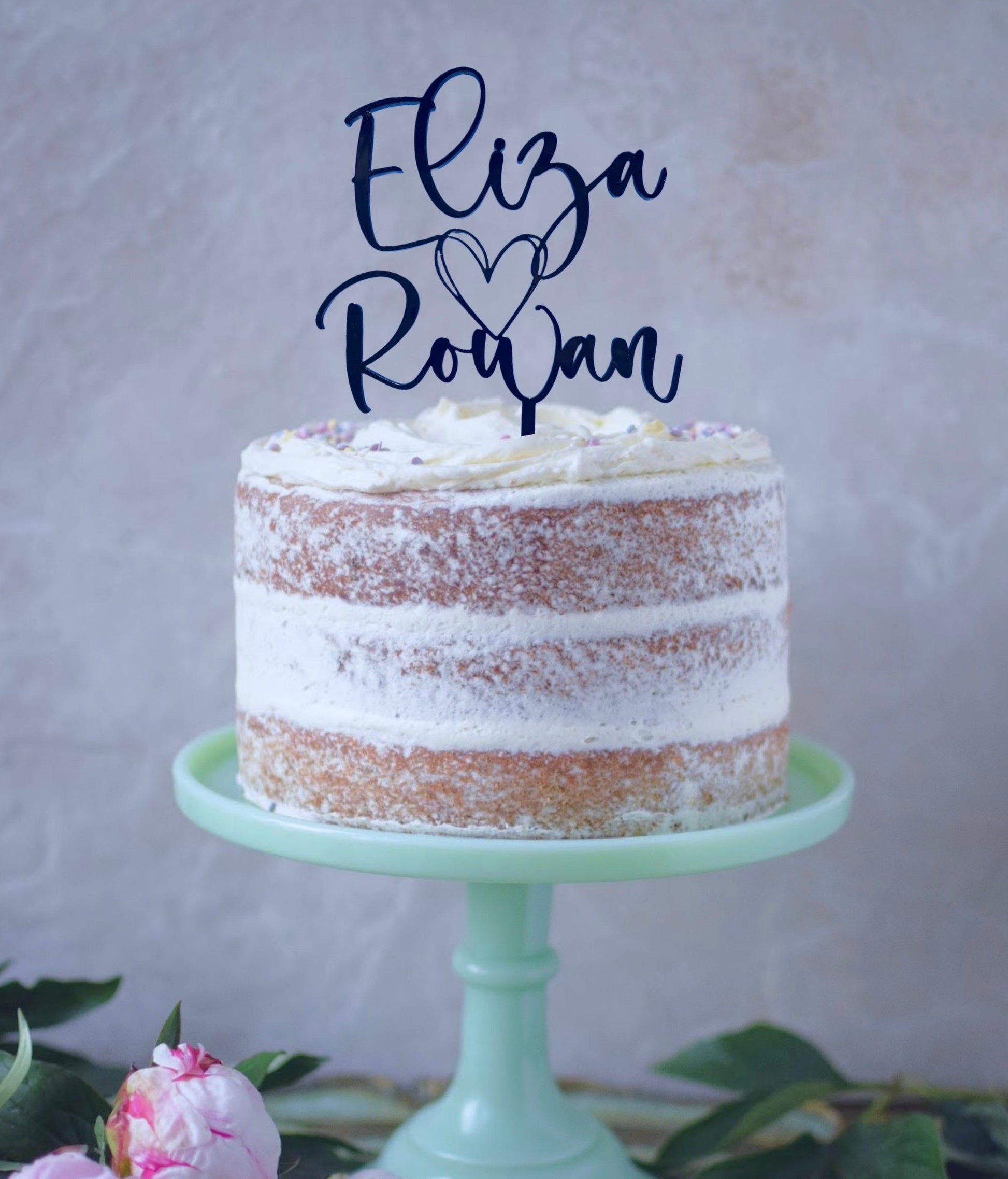 Personalised Acrylic Name & Heart Cake Topper / Wedding /Engagement Decor