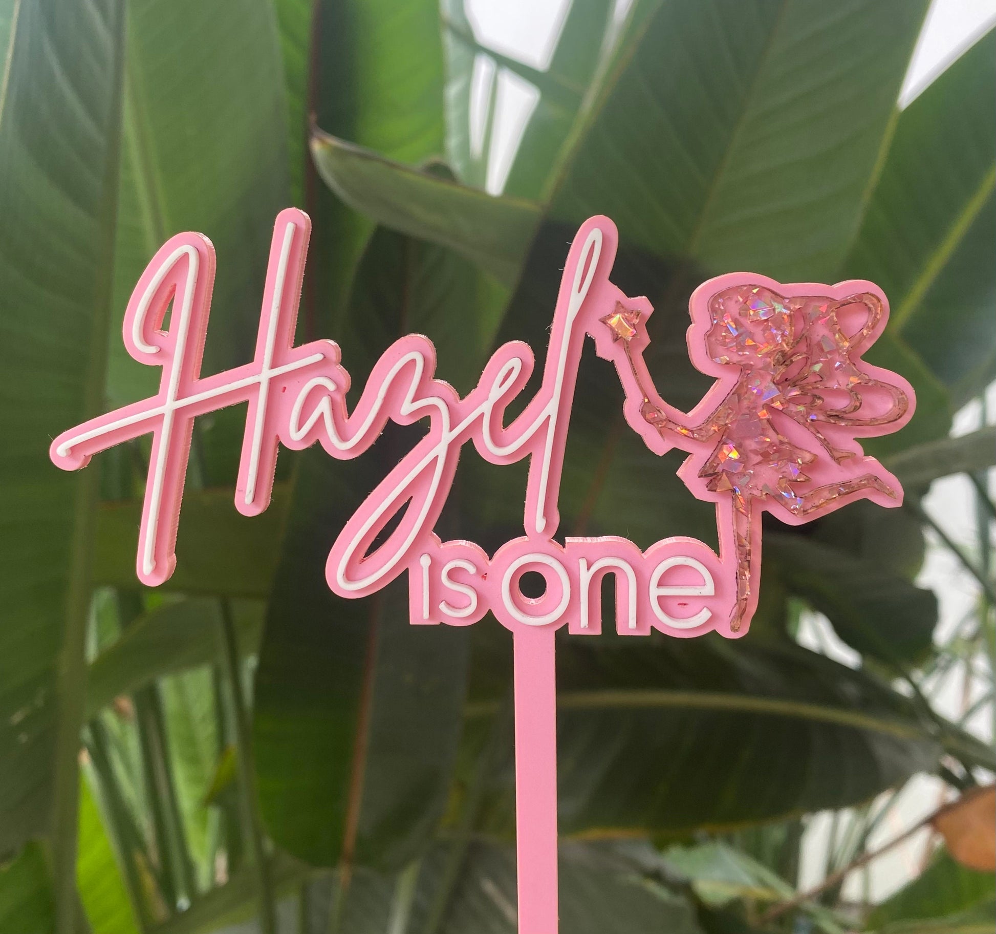 This sweet fairy cake topper can be personalised with your choice of name and number up to ten.