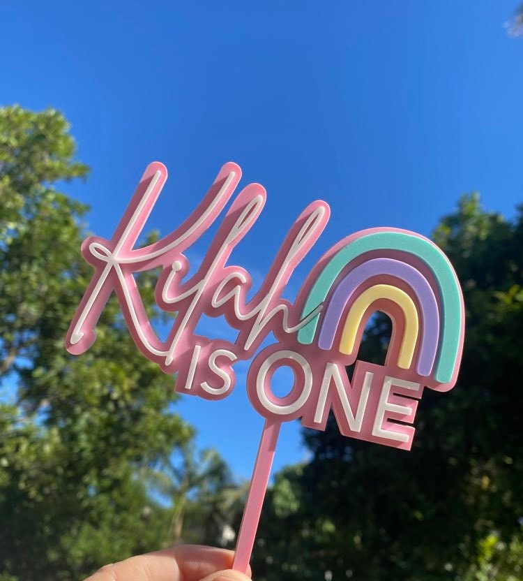 Personalised Rainbow Birthday Acrylic Cake Topper